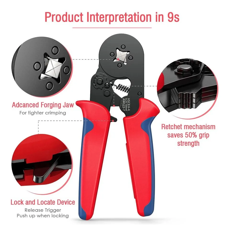 * Excelente herramienta de prensado: estructura duradera y compacta, para conectores aislados y no aislados, el área de prensado es de 0,25-10 mm².
