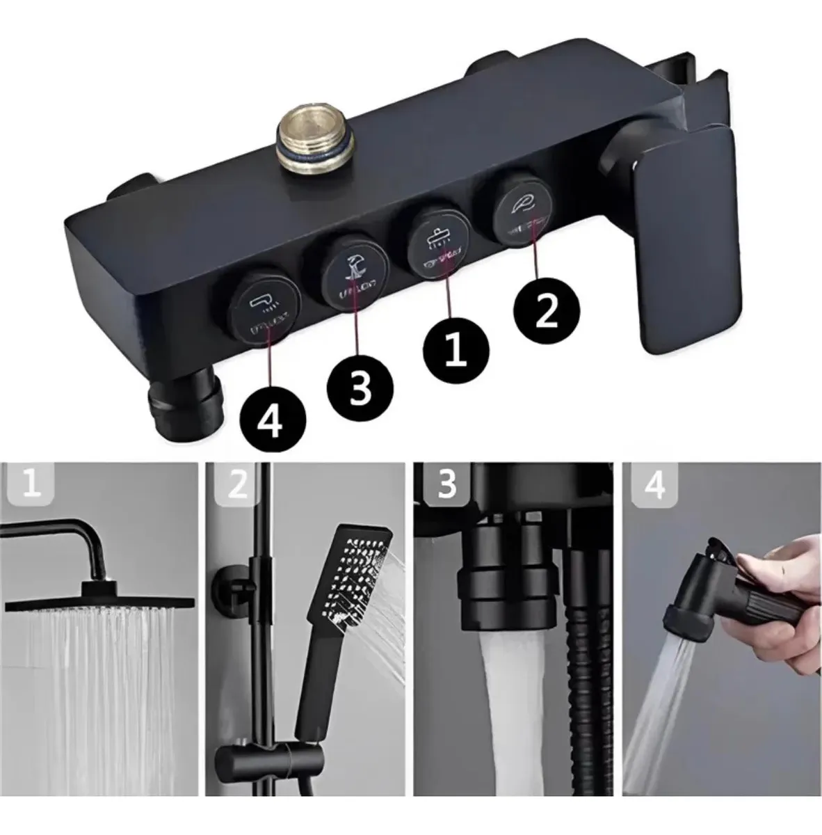 Ducha Columna Grifería Cuadrada Negro Mate 4 En 1