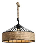 Lampara Colgante Con Cuerda Cáñamo – Metal Rustica Colgante Estructura Negro
