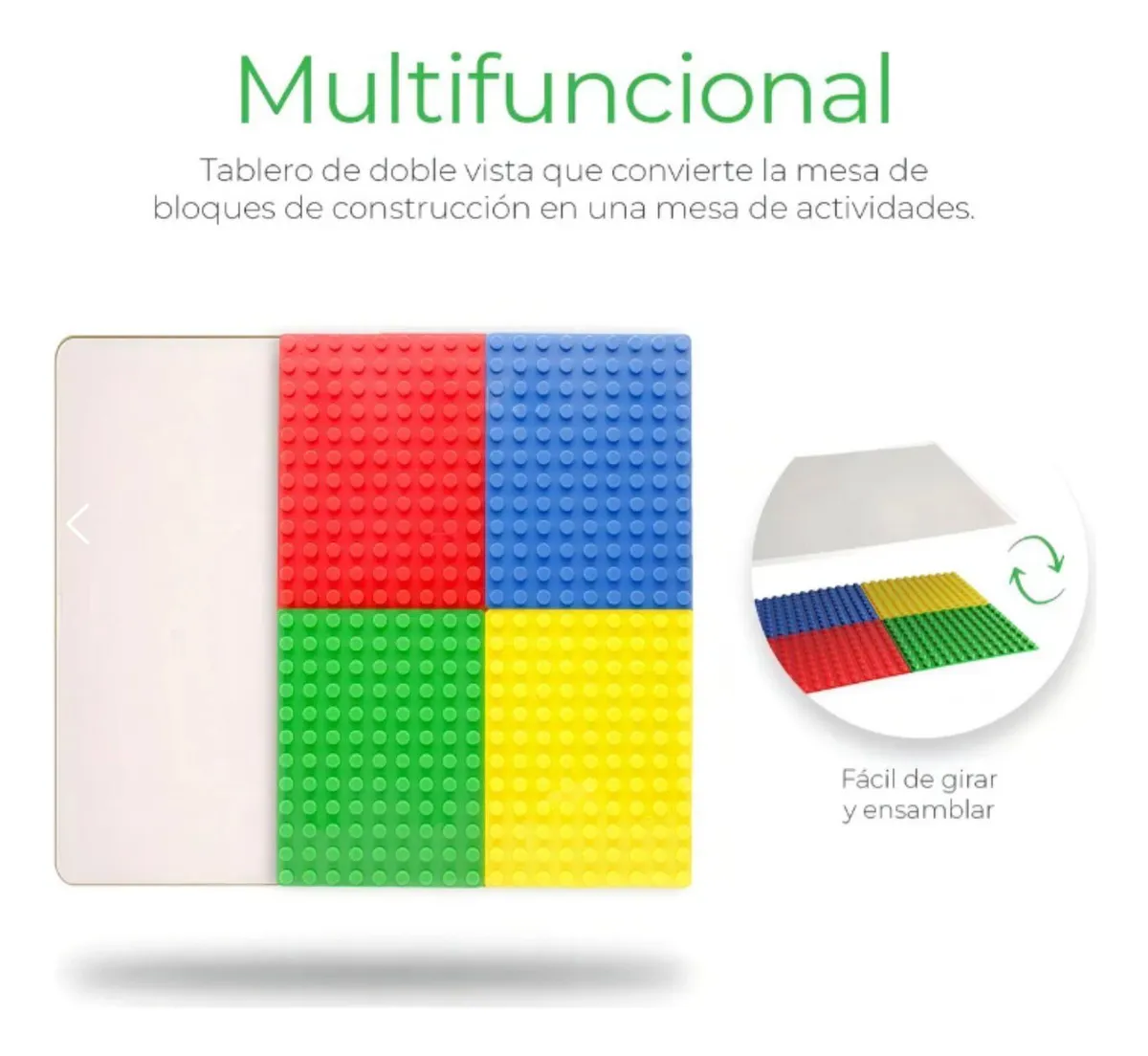 Perfecta para niños pequeños, ideal para actividades educativas, juegos de construcción y desarrollo de habilidades motoras. Fácil de limpiar y mantener.