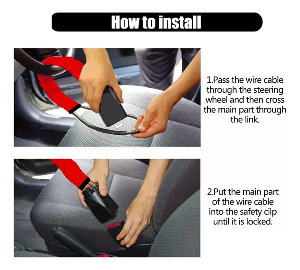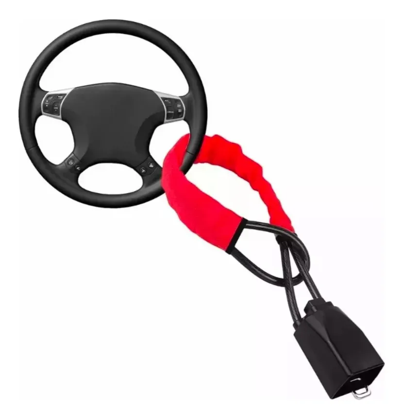 El volante de seguridad con bloqueo tiene una estructura sólida para proteger su automóvil de robos. Esto bloquea el volante y la toma del cinturón de seguridad al mismo tiempo.