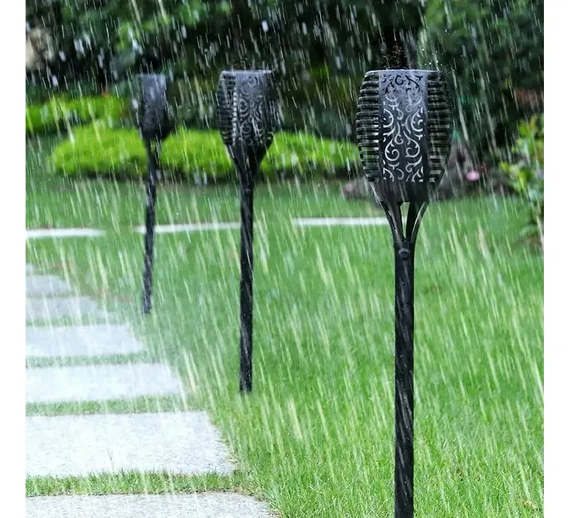 Pack X4 Estaca Solar Antorcha Fuego Impermeable Decoración Color Negro