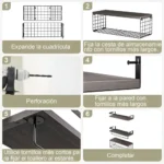 Cada estantería soporta hasta 10 kg, lo que las hace perfectas para una variedad de usos. El ensamblaje es sencillo y viene con un manual que facilita el proceso, asegurando que puedas disfrutar de tu nueva decoración en poco tiempo.