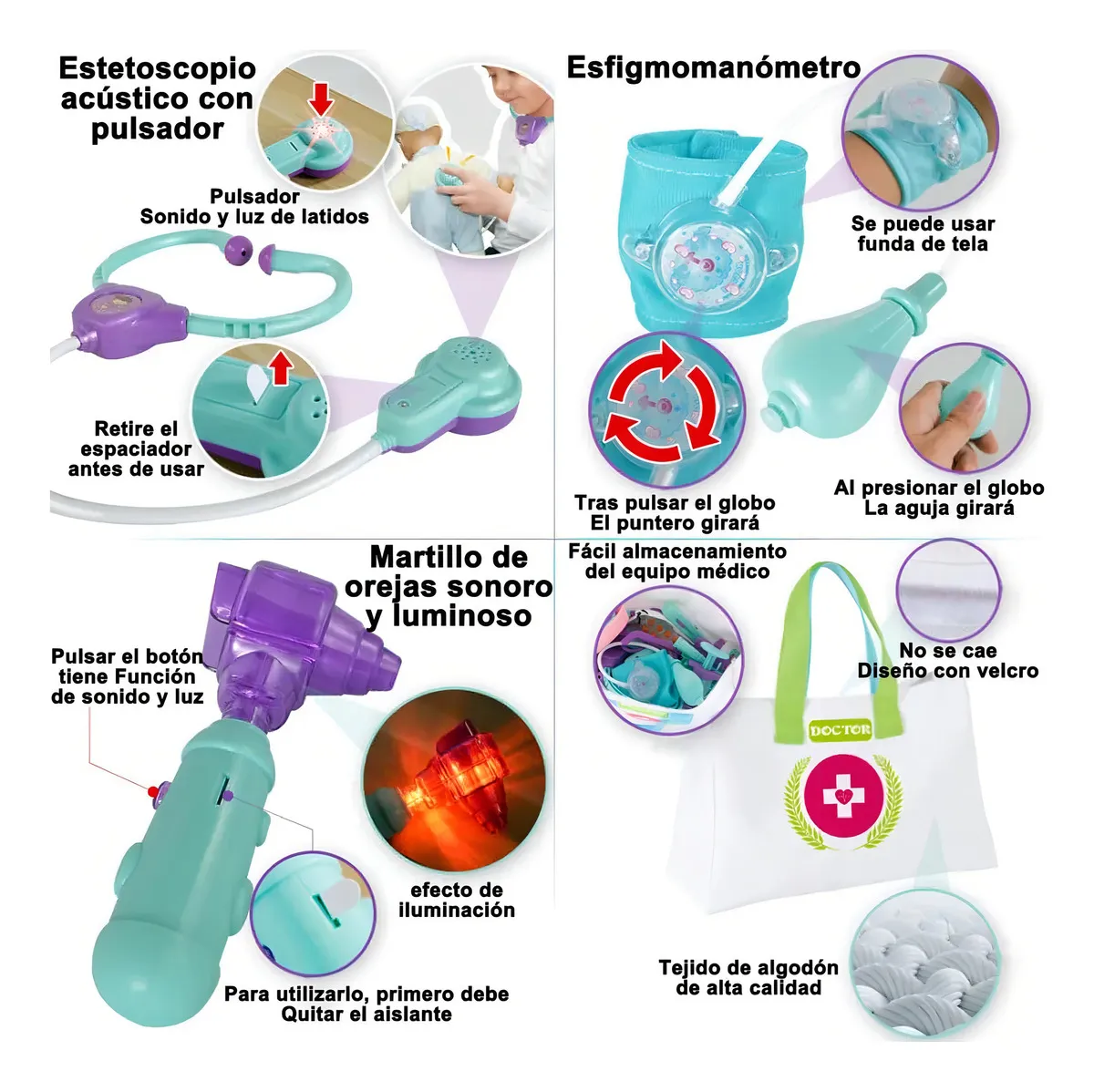 El Set de Juguetes 25pcs Médico Doctor es el regalo perfecto para inspirar la imaginación de los más pequeños. Con una colorida valijita en turquesa, este conjunto permite a los niños sumergirse en el fascinante mundo de la medicina a través del juego. Diseñado para fomentar la creatividad, incluye una variedad de instrumentos médicos, ideales para simular el papel de un doctor.