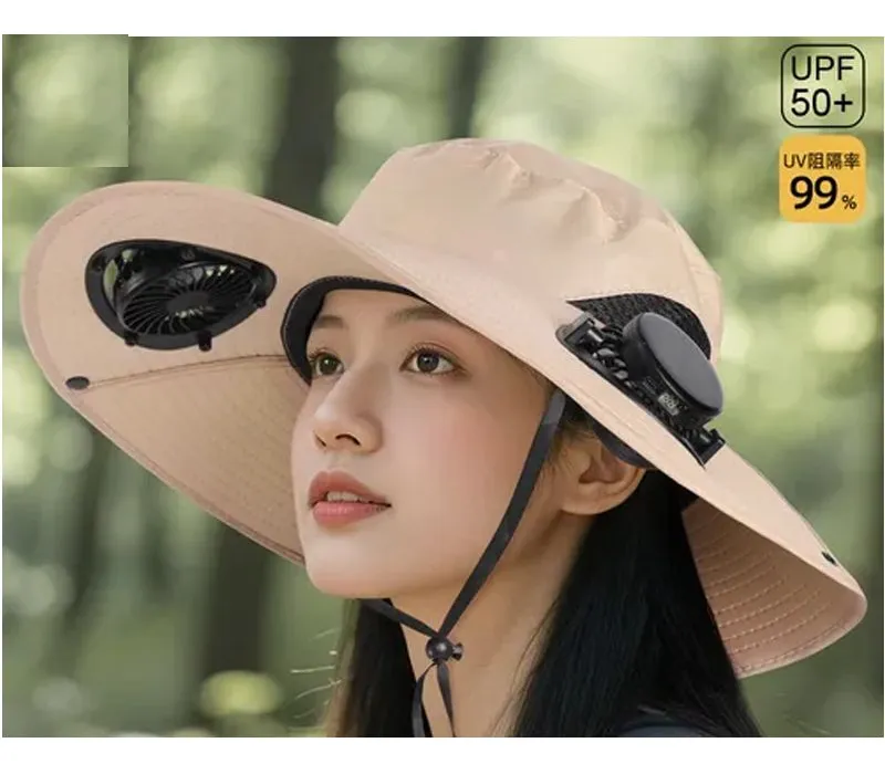 Ventilador Sombrero Solar De Doble Cabeza Camping